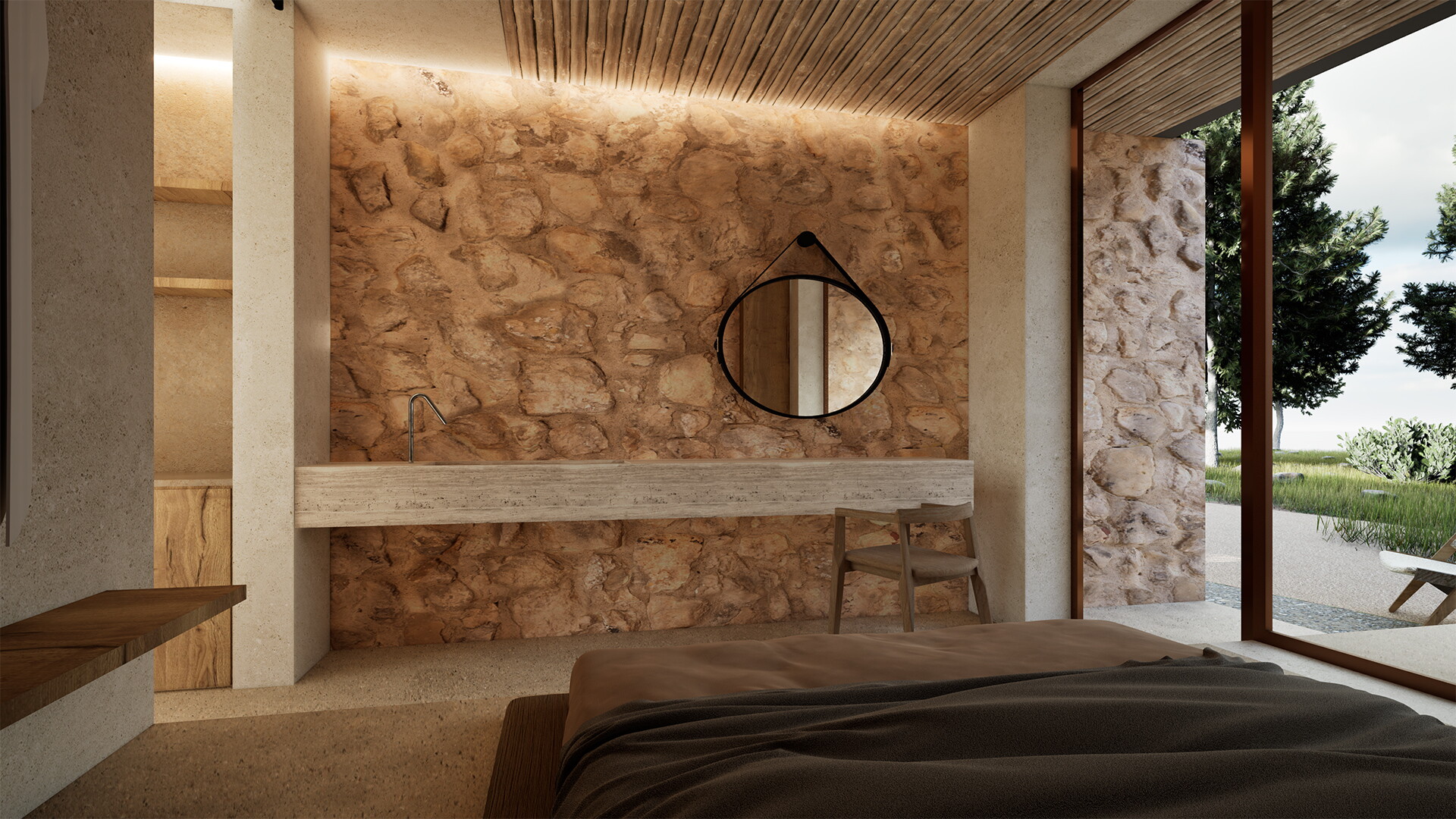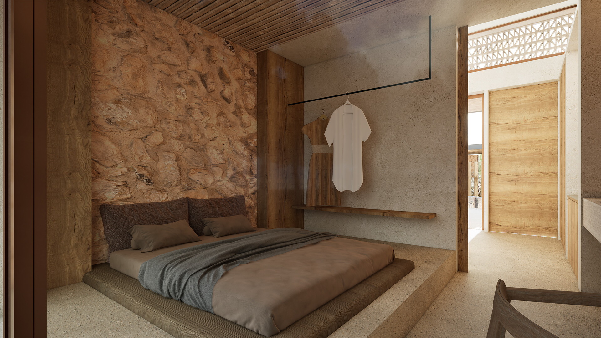The suite includes two private balconies. One overlooks the lush green forest surrounding the property and hosts the private plunge pool, while the second faces the main pool, offering a lovely summer escape atmosphere.