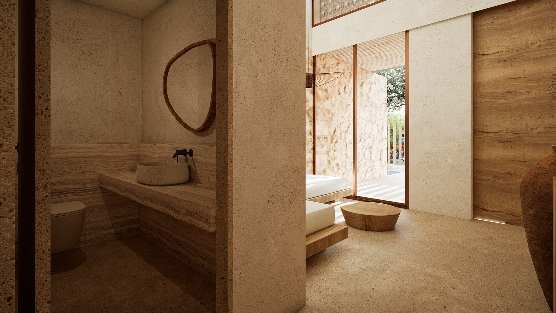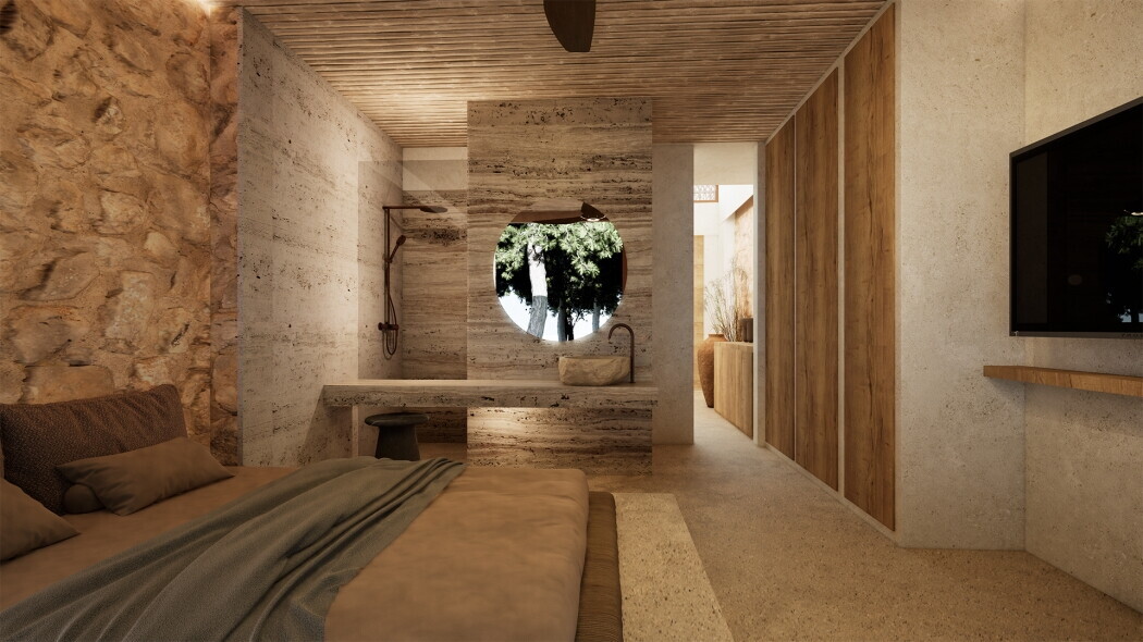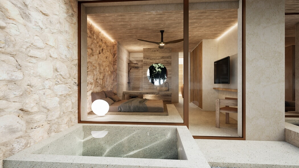 Suita are două balcoane private. Unul oferă vedere către pădurea verde din jurul proprietății și include piscina privată tip plunge pool, iar celălalt este orientat spre piscina centrală, oferind o atmosferă plăcută de vacanță de vară.
